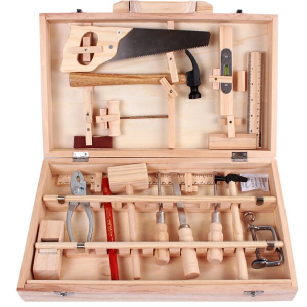 🧰 All-in-One Wooden Toolbox: Includes a saw, wrench, hammer, screwdriver, nuts, bolts, rulers & more – neatly packed in a wooden carry case.